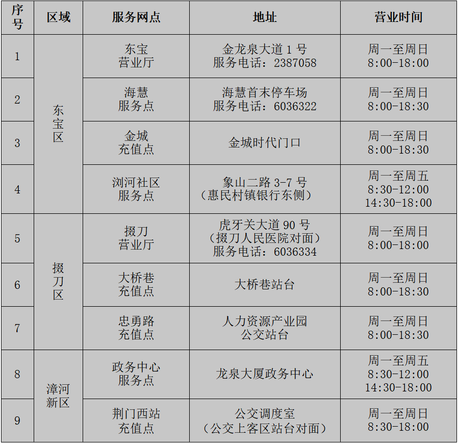 荊門城區(qū)公交IC卡充值站點(diǎn)