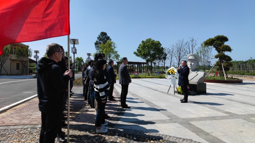 黨員們在陳士榘將軍故居前莊嚴(yán)肅立重溫入黨誓詞,表達對革命先烈的敬仰和追思,面對陳士榘將軍雕像默哀鞠躬敬獻花籃,共同緬懷他的革命精神和崇高風(fēng)范。