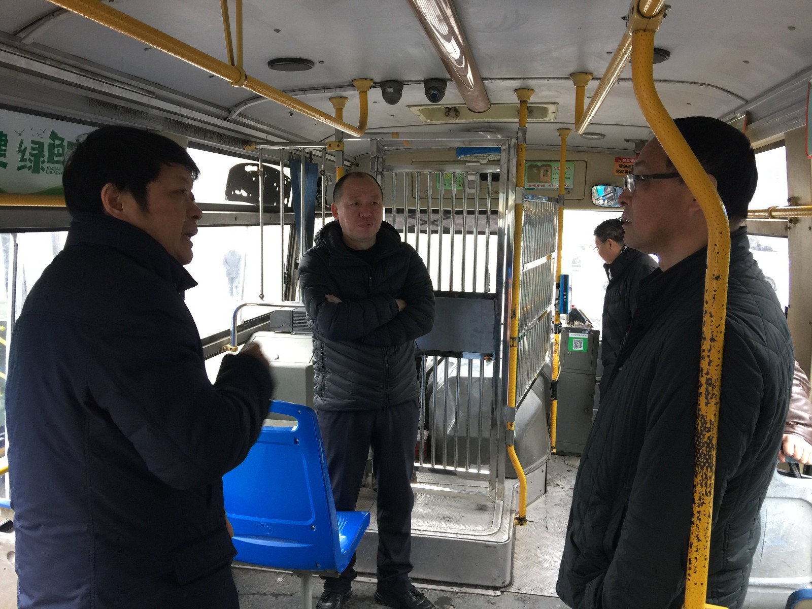 1月11日上午,市政府副秘書長王華忠,市交通運輸局局長周美元、副局長羅楚平,市客管處處長劉來斌,市公安內保支隊副支隊朱前方一行到市公交集團公司督查指導中心城區(qū)公交車生命防護裝置整治專項工作。